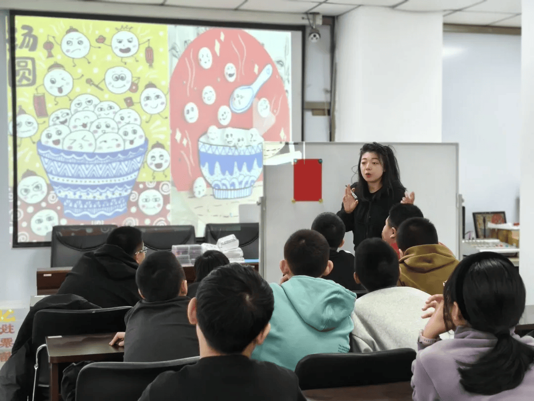 活动现场暖意融融,老师生动解读元宵节的起源、猜灯谜、吃汤圆等民俗知识,让文化传承入脑入心。在共绘“元宵节”主题创意画环节,为孩子们授课并引导主题创作。孩子们在专业指导下,用画笔描绘出圆滚滚的汤圆和五彩斑斓的花灯,一幅幅充满想象力的画作展现了童心童趣。