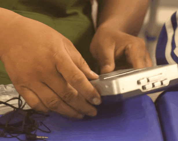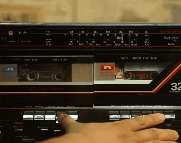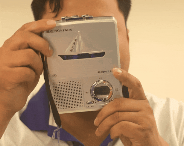 轻轻一按,磁带仓盖迅速弹出。