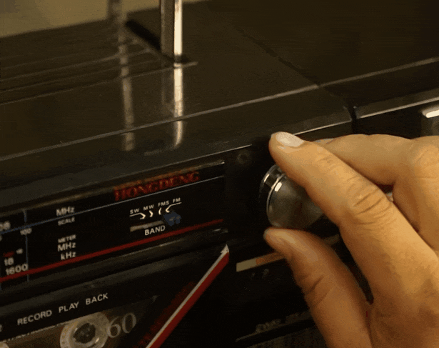 旁边是一个可旋转的调频旋钮,任意转动,就能跳转到不同频道的广播。