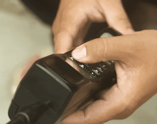 正面是一块巴掌大的单色显示屏,下方排着小巧灵敏的按键。