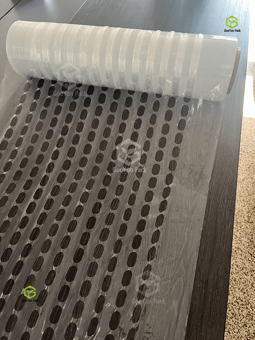 通风透气的预拉伸打孔缠绕膜,固永包材新产品,人工手用打包的福音