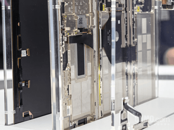 【CNMO科技消息】3月2日,在巴塞罗那世界移动通信大会(MWC 2026)上,华为在一号展馆中展示了旗下新款三折叠手机Mate XTs的拆解样机。