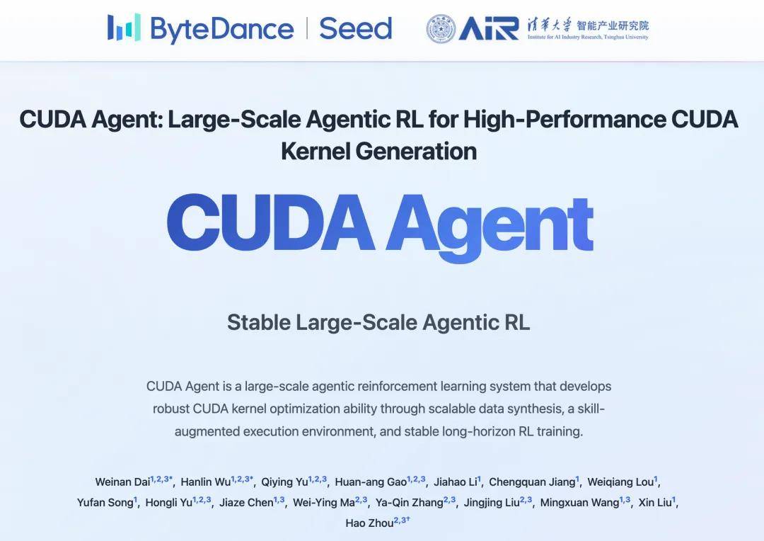近日,来自字节跳动 Seed 团队和清华大学 AIR 的新研究 CUDA Agent,在 AI 领域引发了不小的轰动。
