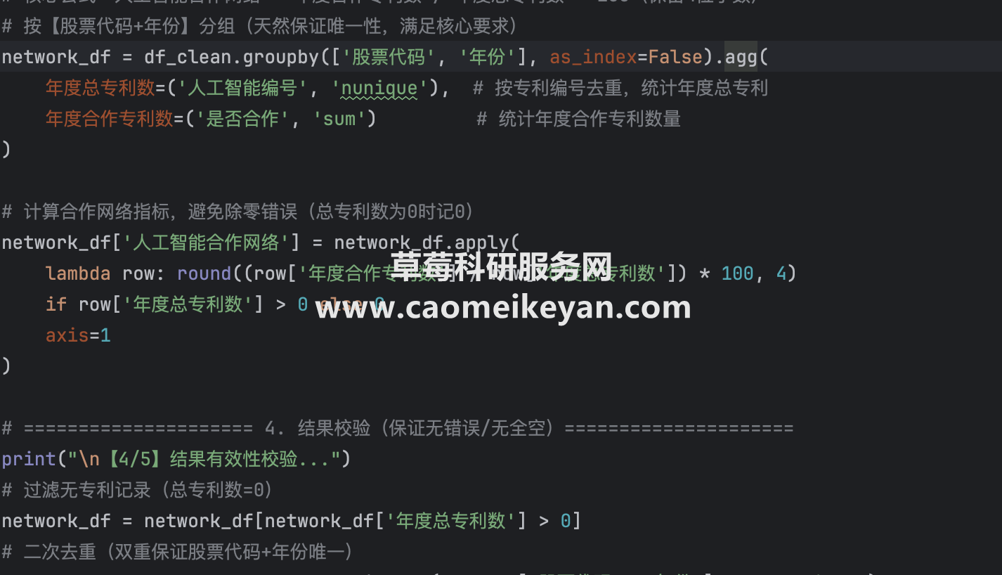 3、资料范围:2.5万个样本,3400多家企业(8000多个非0有效值,由于所研究对象为具有人工智能专利企业,因此样本量属于正常现象),包括原始数据、计算代码、计算代码视频运行(由于视频运行时间太长占用太多无效内存,因此给大家做了部分视频录制,确保代码是真实的)及最终结果,大家可以验证一下确保准确性!