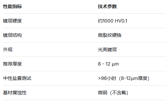 - 高硬度镀层:硬度约1000 HV0.1,满足耐磨性要求
