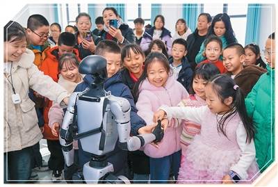 图为2月27日,在文林路社区党群服务中心,『机器人』️正在和小朋友互动。