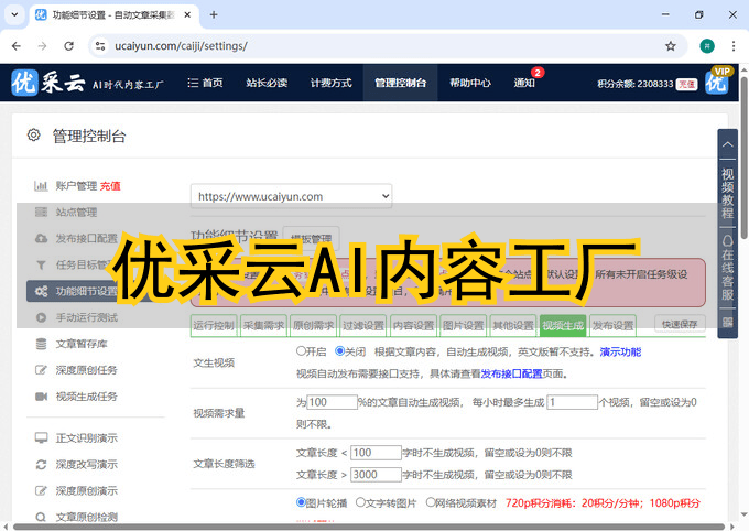 每小时原创文章数:这里可以设置为一个较小的数字,比如5-10。因为我们只针对采集到的相关微博生成评论,所以这个数字代表了每小时最多会为多少条微博自动生成并发bu评论。