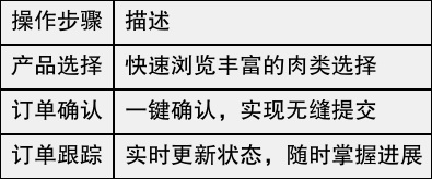 结论移动端应用的普及改变了传统生鲜购物的方式,尤其是在处理肉类订单方面。万象生鲜系统凭借其便捷的操作和高效的订单管理,为用户提供了极大的便利。通过简单的界面设计,用户可以快速找到所需产品,并实现无缝下单与支付。此外,系统中的实时更新和跟踪功能,让用户时刻了解订单状态,带来更安心的购物体验。同时,新鲜度保证措施亦得到充分关注,确保每一份肉类都能在最佳状态下送到用户手中,从而提升了整体满足感。移动端技术的发展正为生鲜市场带来新的机遇与挑战。
