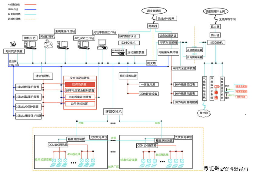 - 配置 AM5SE-IS(35kV/10kV/380V)、AM3-I(380V)防孤岛保护装置,动作时间≤2s,具备失压跳闸、频率 / 电流保护等功能,从源头避免电网停电后光伏持续供电的安全隐患;