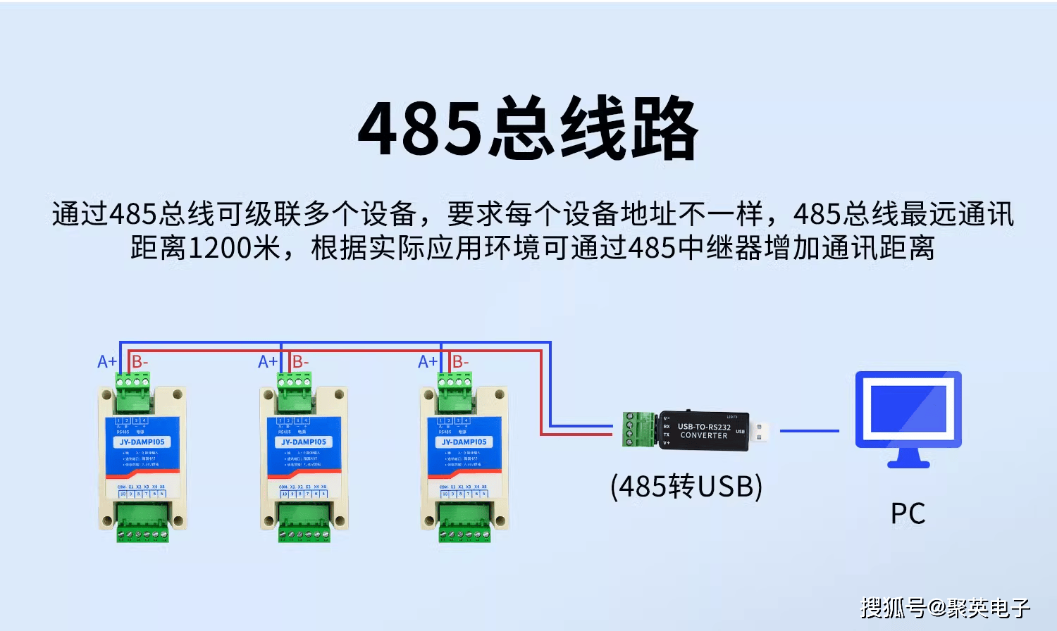 通过485总线可级联多个设备,要求每个设备地址不一样,485总线最远通讯距离1200米,根据实际应用环境可通过485中继器增加通讯距离