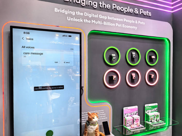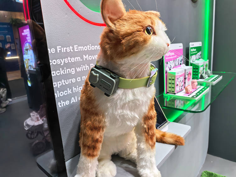 要说最吸睛的产品,当属这款PetPhone宠物手机。不同于普通的宠物追踪器,它是个戴在宠物身上的小电话,支持双向通话功能,主人能通过APP随时呼叫,宠物经简单训练后,还能靠特定动作主动拨电话,把需求传递给主人,彻底打破单向监控的局限,让宠物也拥有话语权。