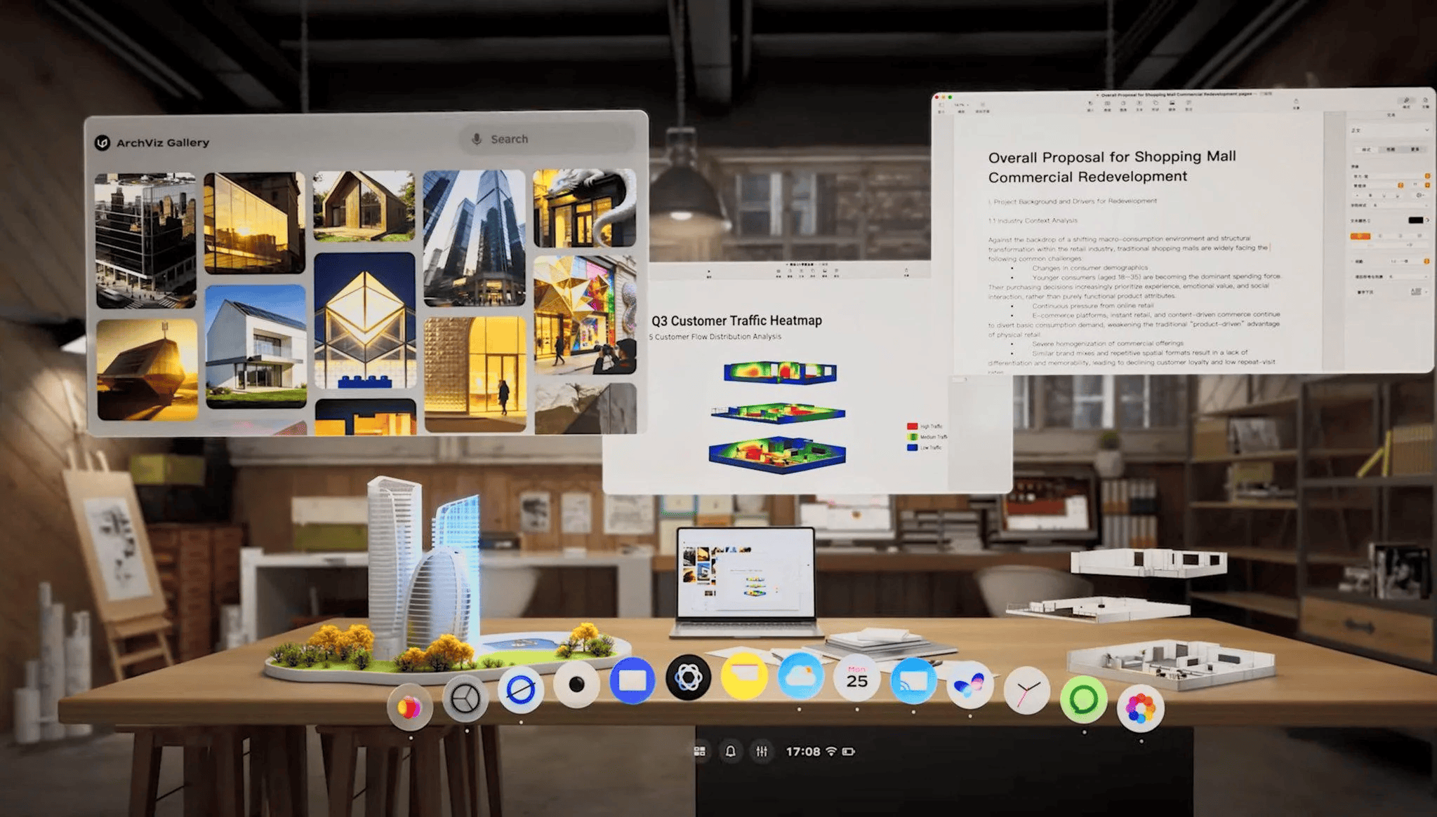 凭借空间内核的支撑,OS 6 允许用户在物理空间周围自由锚定多个窗口,构建出一个超越传统物理显示器限制的无限、高分辨率工作空间。对于用户而言,相当于拥有了360度全景大屏。用户能既保持在高保真的3D模拟环境或逼真的混合现实环境中,又可以同时操作多个生产力工具,进行多任务处理,实现无缝交互。