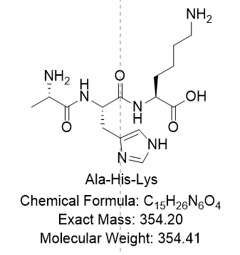 - 核心肽骨架:丙氨酸(Ala)‑组氨酸(His)‑赖氨酸(Lys),线性三肽,C 端游离羧基