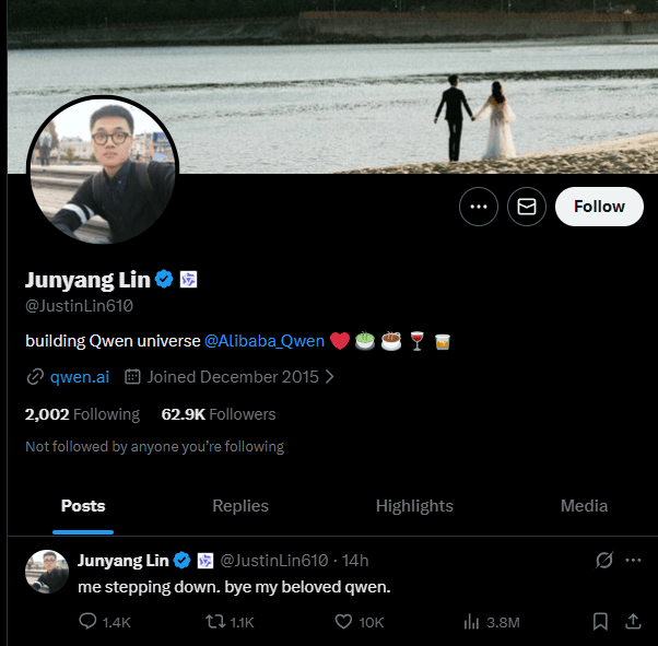 林俊旸告别阿里千问。