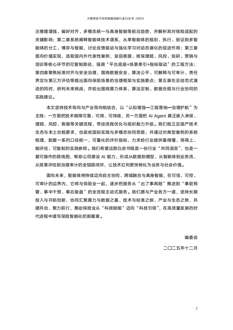 《大模型技术深度赋能保险行业白皮书(2025)》聚焦智能体驱动的保险新范式,系统阐述了大模型与智能体技术在保险行业的应用现状、技术演进与未来趋势。