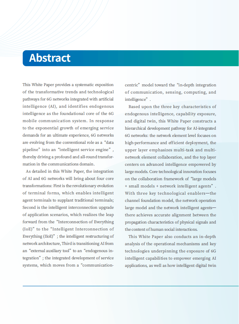 今天分享的是:中信科移动:2026年与人工智能集成的6G网络报告(英文版)