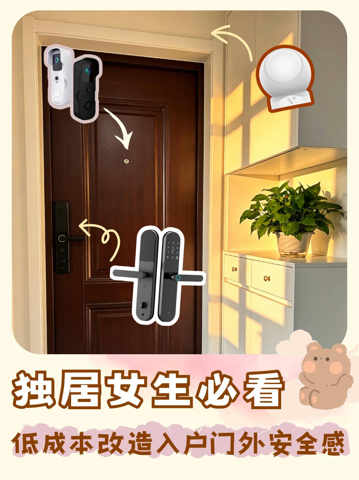 各位姐妹 作为独居女生,每天下班回家最在意的就是安全感!今天给大家分享低成本入户门外的智能改造,都是小未的宝藏单品,安心感直接拉满~