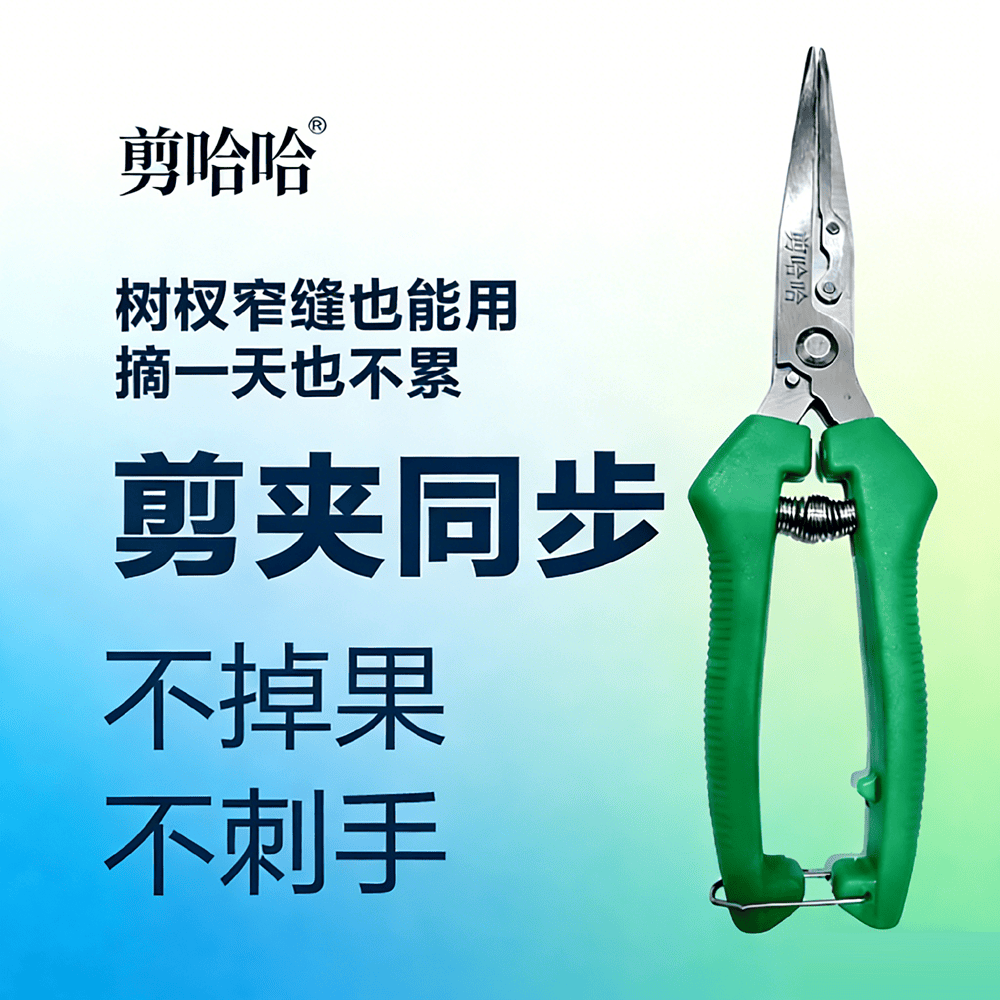 此外,产品维护简便:每次使用后,用清水冲洗并擦干,防止锈蚀;定期涂抹少量食用油润滑弹簧及铰链接缝即可。常见问题如“果实未成功夹住”,通常因夹片被枝叶卡住,调整剪切角度即可解决;“剪刀闭合困难”可能是弹簧张力过大,适当放松锁扣后重新尝试;“刀片生锈”则因未及时清洁,可用砂纸轻磨锈斑后涂抹防锈油。