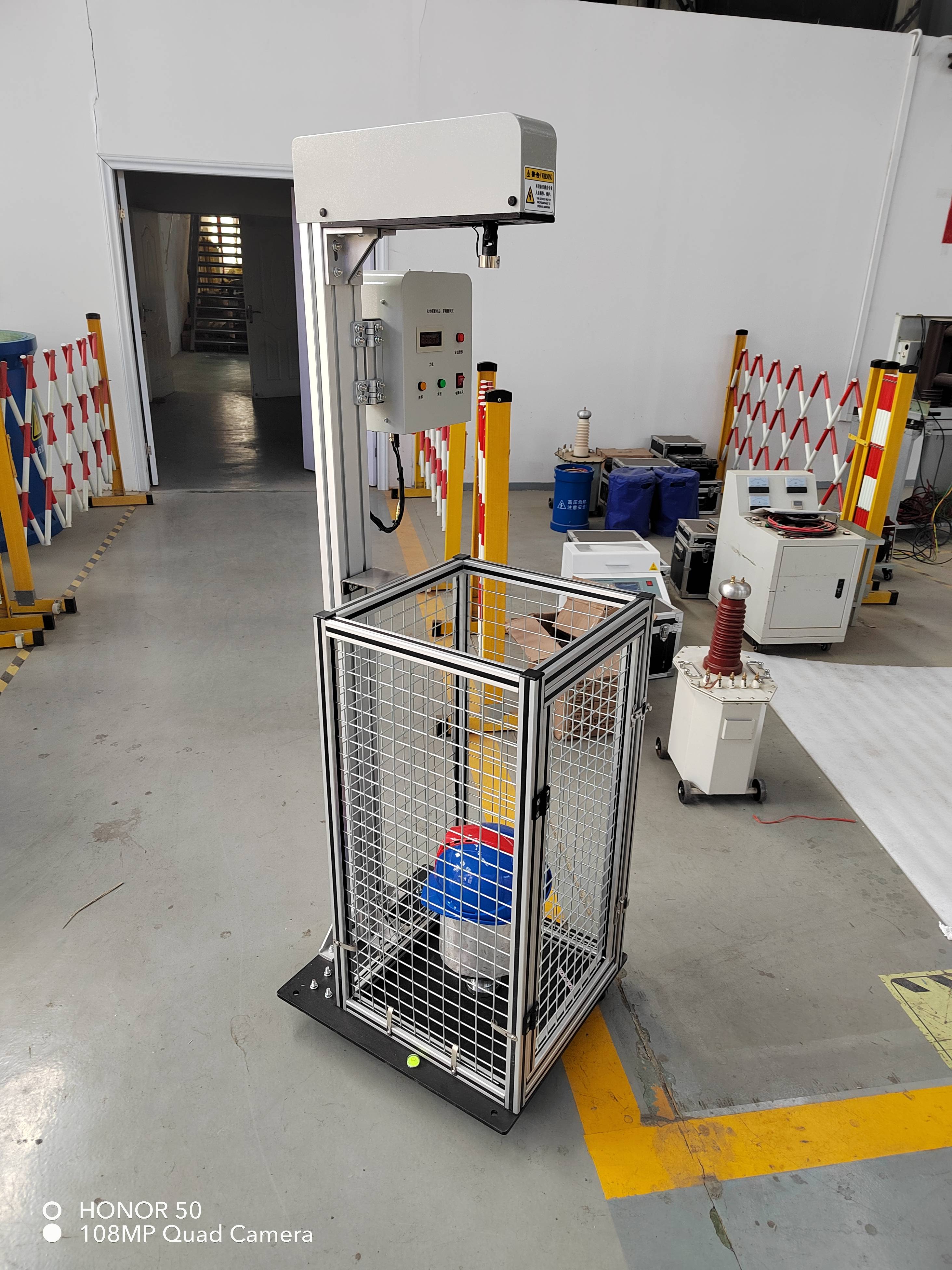 遥控高度提升装置:测试高度通过遥控提升装置调节至标准要求高度1米,满足不同规格安全帽的测试需求。同时,该装置还具有高度锁定功能,确保在试验过程中高度不会发生变化。
