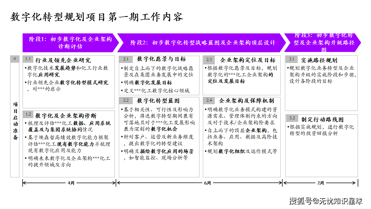 - 架构规划:设计总体技术架构、数据架构、应用架构和安全架构。