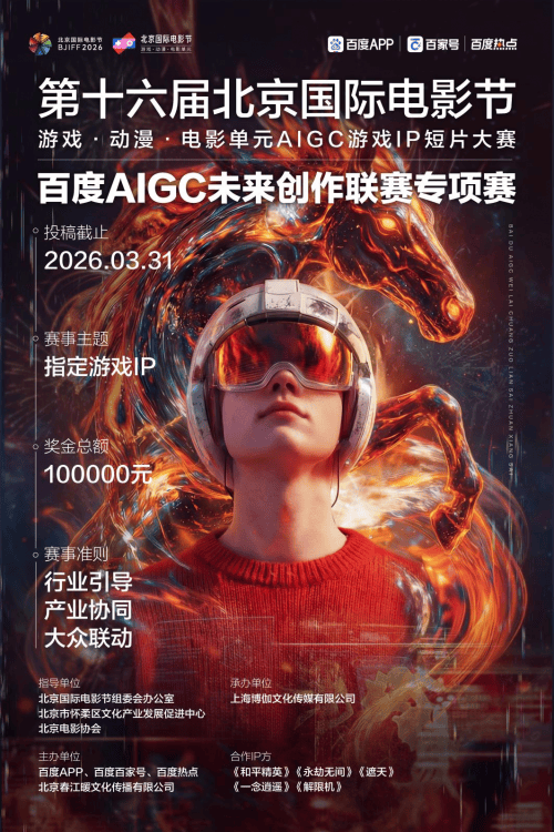 本次大赛联袂百度开设“百度·AIGC未来创作联赛S3”赛道,为参赛者提供多元表达空间与技术赋能支持。现面向全社会创作者正式发出邀约,共同开启一场通往未来生活的创意之旅!