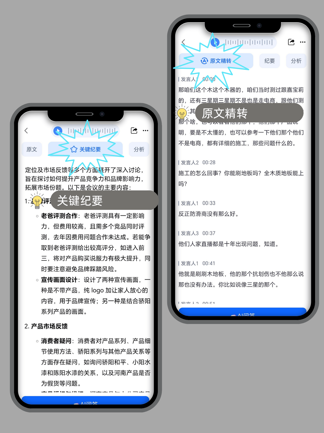 第一个技巧是「录音前预设关键词,精准定位核心信息」。不管是模拟面试、论文访谈还是小组讨论,我们其实都知道哪些内容是重点。比如准备校招产品岗面试时,我会提前把“自我介绍优化”“用户需求分析思路”“职业规划细节”设为关键词,用听脑AI上传录音后,系统会自动标记所有包含这些关键词的片段,不用再逐句听录音,直接跳转到对应部分。上次帮学妹准备腾讯的面试,她模拟时把“用户分层”的逻辑说混了,用这个功能我们10分钟就找到了问题所在,比之前听完整场录音省了2小时。