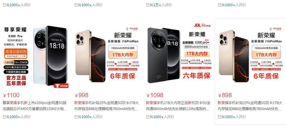这不是个例!我是个追根溯源的性格,直接开始搜索“新荣耀”,瞬间让我眼睛一亮“牛,真的牛”像什么尊享荣耀x30pro、像什么甄品荣耀X200Pro等。。。。。这些都是用着正儿八经荣耀手机很类似的命名逻辑,但却在官方杳无踪迹