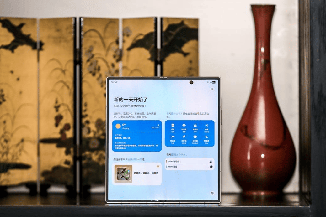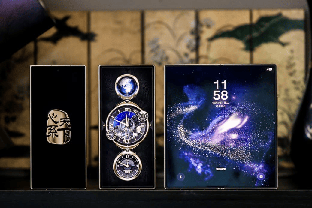 在商务场合,品位藏在细节之中,心系天下三星W26的配色与细节设计,完美契合商务精英的高端审美需求。两款全新配色精准踩中商务格调:玄曜黑,内敛沉稳中蕴藏澎湃气度,适配各类正式场合;丹曦红,华彩流转间承载东方漆艺的典雅,彰显独特品位。专属动态壁纸、“心系天下”徽标动效与高端时钟动效,每一处细节都尽显尊贵,让你在日常交互、商务展示中,轻松彰显不凡格调。