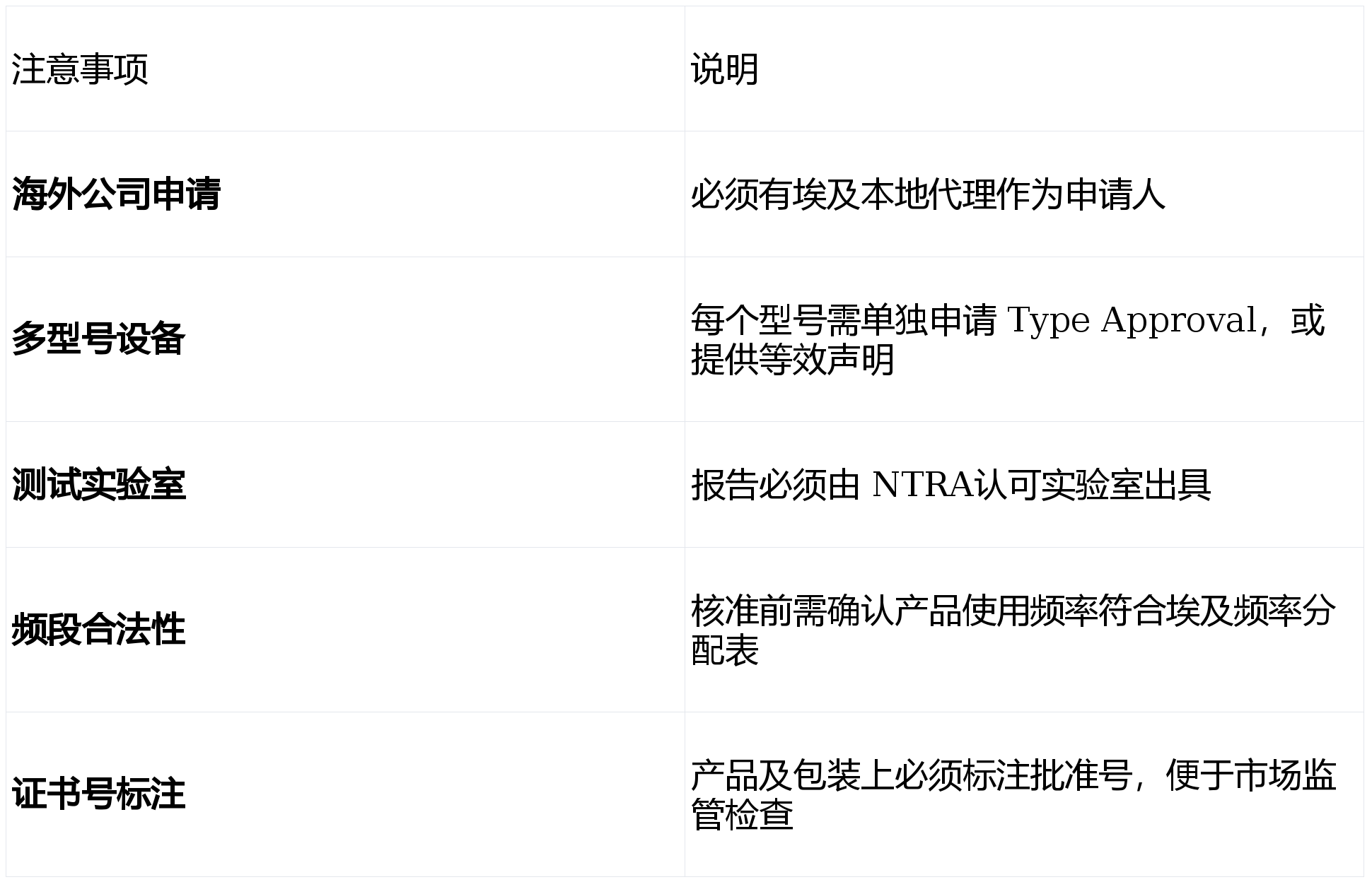 - 审核通过后,NTRA发放 Type Approval Certificate