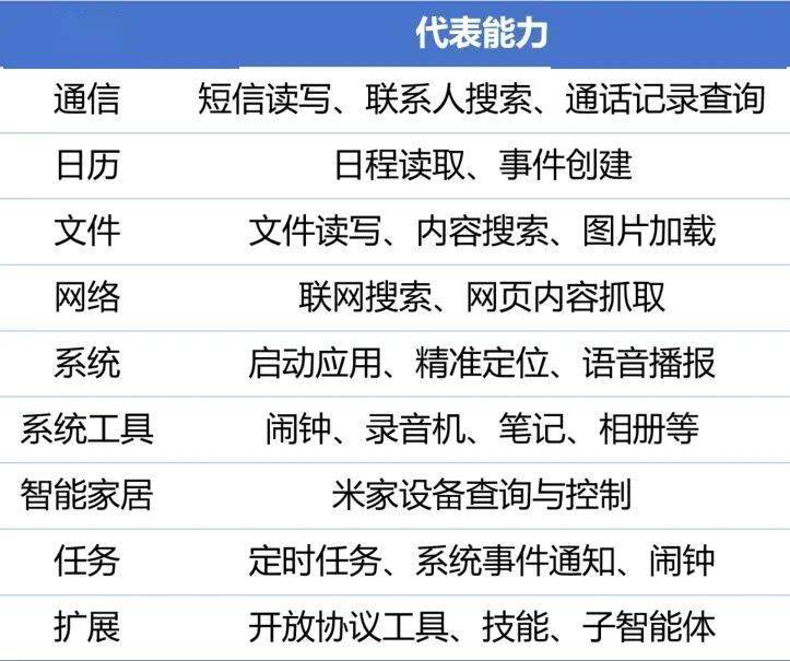 Xiaomi miclaw 以系统应用身份运行,拥有系统核心应用能力。Xiaomi miclaw 把手机的系统能力封装成了 50+ 系统能力和生态服务(不断扩展中):