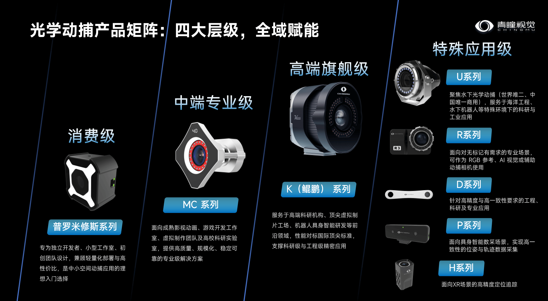 这一年,CHINGMU青瞳视觉直面行业核心难题,实现多项核心技术的关键进化,发布多项重磅新品,以硬核实力完善产品矩阵,构建起覆盖高端旗舰级、中端专业级、消费级及特殊应用级的光学动捕产品体系,为前沿科研到个人创作的全维度需求精准赋能。