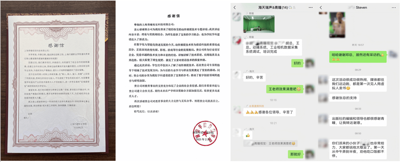 青瞳视觉更以优质的产品与全流程服务,收获上海行健职业学院、潍坊学院、海天瑞声、苏州书展展会等众多客户的感谢与好评,用实力践行「客户为先」的初心。