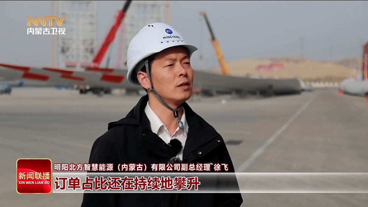 明阳北方智慧能源(内蒙古)有限公司副总经理 徐飞 2026年预计(订单量)会达到6吉瓦左右,那么其中10兆瓦及以上的大型风电机组订单占比还在持续地攀升,我们今年还加快推进了乌兰察布基地的建设,预计在3月份全面投产,真正实现起跑即冲刺。
