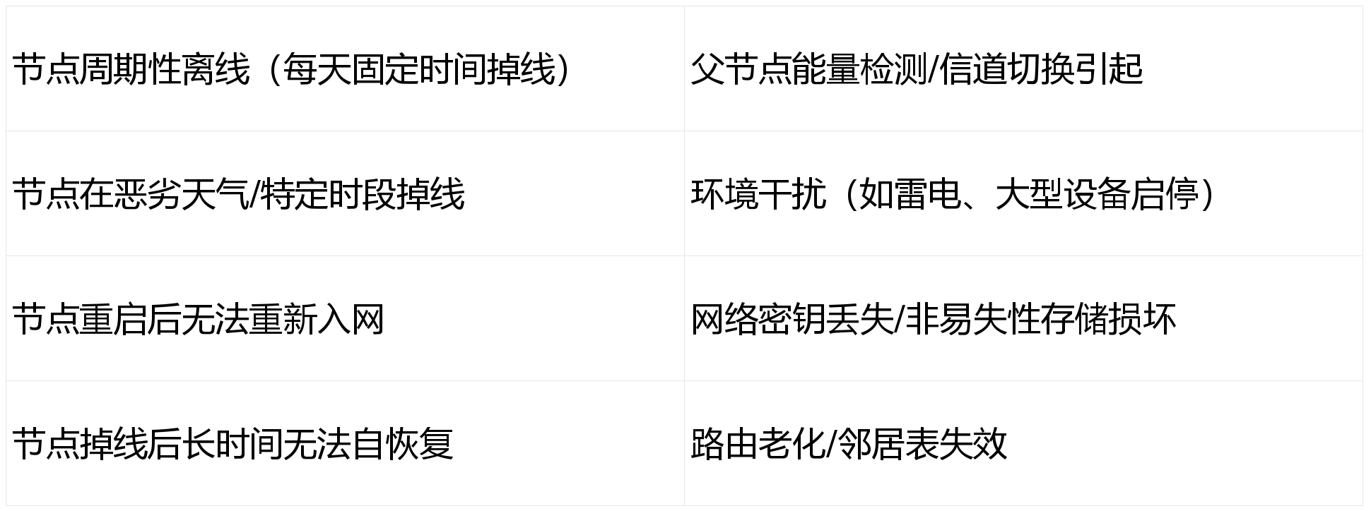 设备掉电重启后,如果非易失性存储器中的网络密钥被意外擦除,设备会认为自己仍处于网络中,但实际上无法解密数据,表现为“沉默离线”。
