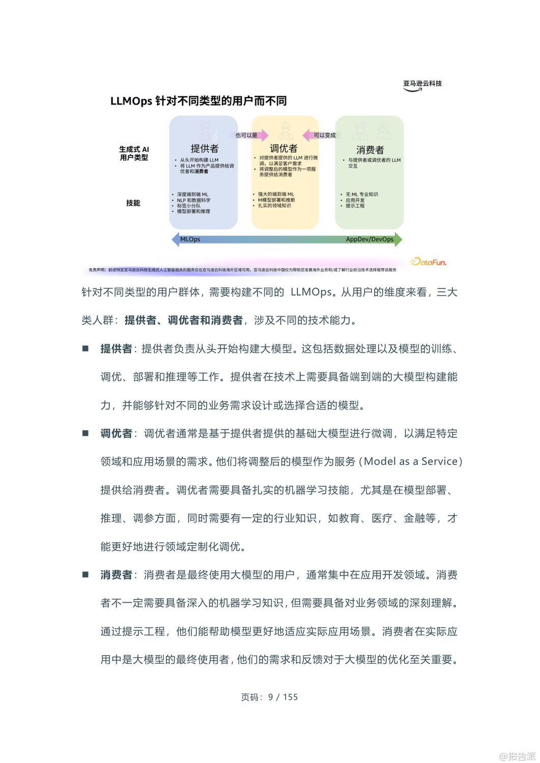 在技术层面,LLMOps超越了传统的MLOps,引入了提供者、调优者和消费者三方协作的新范式。
