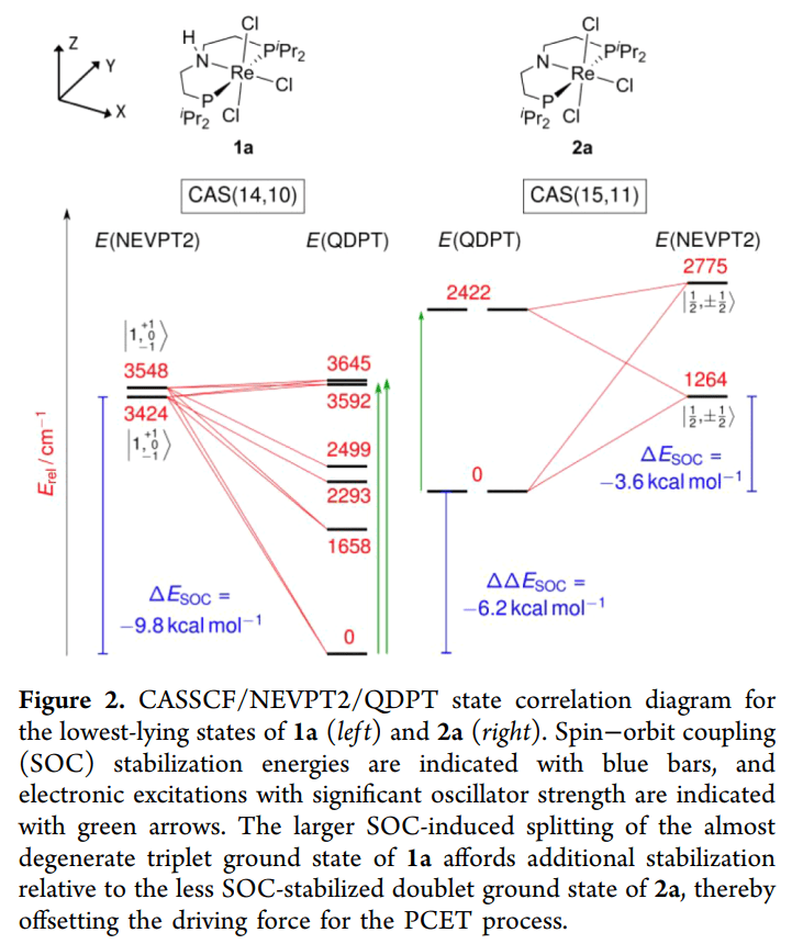 2. PCET 过程中的状态切换: 从 Re(III) 到 Re(II) 或 Re(IV),金属中心的电子数发生变化,磁性质随之改变。SOC 对不同氧化态的稳定化作用不对等,直接导致了实验观测值的偏移。