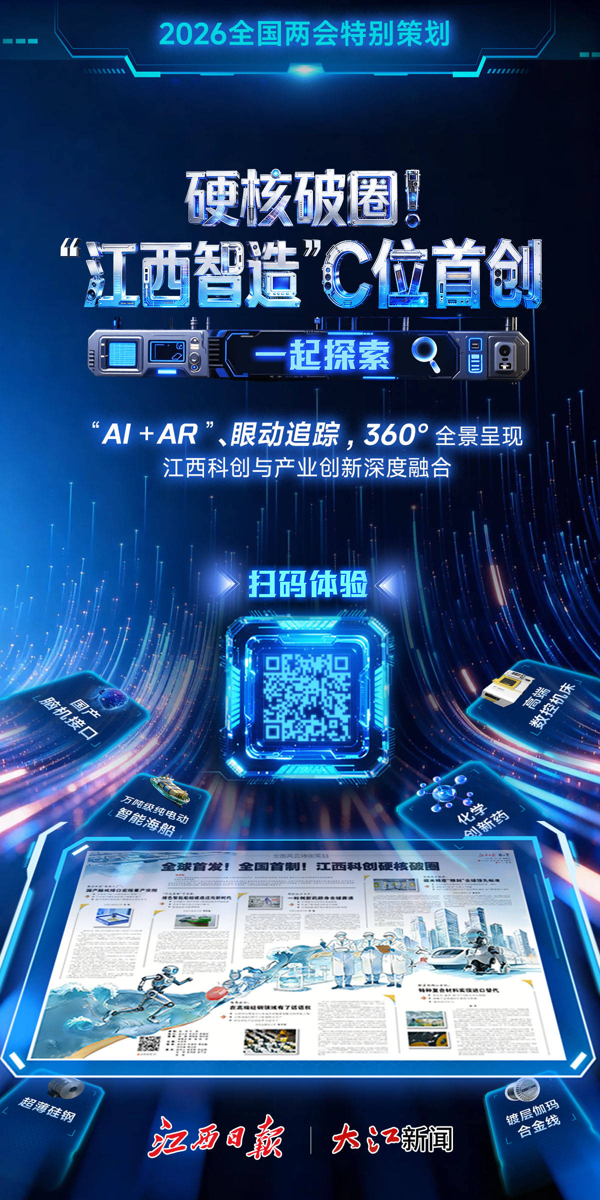 江西日报社推出融媒体报道《全国两会特别策划 | 江西科创硬核破圈》,以报纸📰图文报道与融媒体产品两大形态,生动呈现江西科技创新和产业创新的深度融合和重大成果,充分展现创新中国的江西实践。