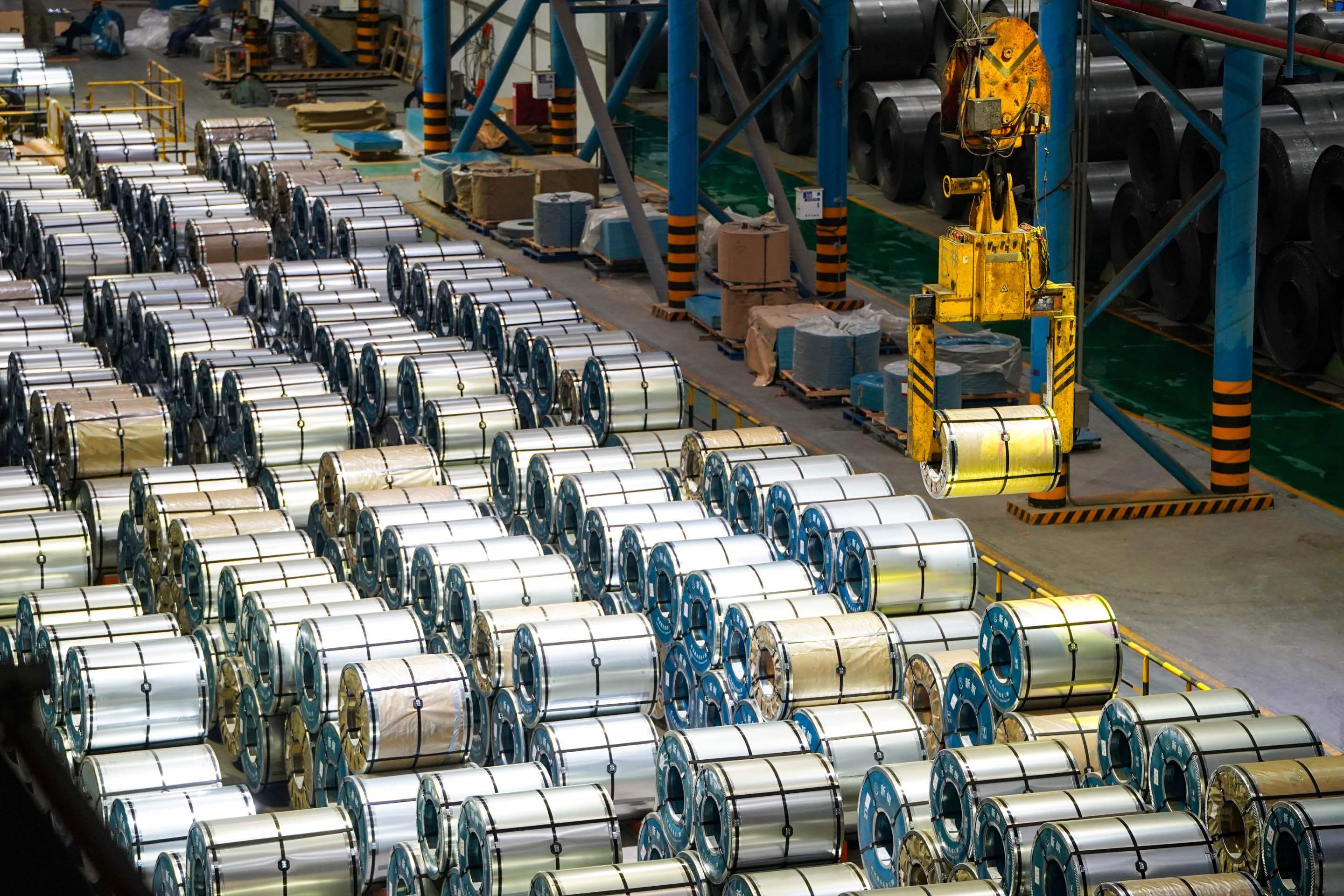 2月9日,记者走进新钢集团硅钢薄板事业部成品车间,仿佛进入了钢铁丛林:一个个巨大的钢卷泛着银光,犹如士兵整齐列阵。行车在高空穿梭,将一卷卷硅钢轻盈地装入等候的货车。
