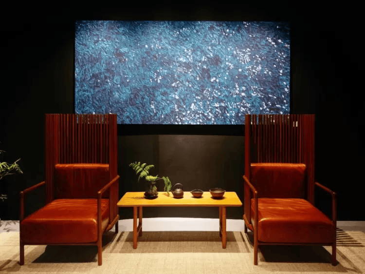 在艺术照明空间,纹理屏与爱加照明高端室内灯具、艺术家滕斐的画作交相辉映
