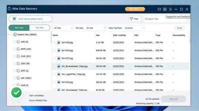 Wise Data Recovery 是一款全免费的万能数据恢复软件,具备体积小、易使用的特点。软件提供免安装便携版本,无需繁琐安装步骤,联网后即可直接运行。在恢复操作上,流程简单易懂,用户仅需选择目标扫描位置,点击扫描后等待完成即可。