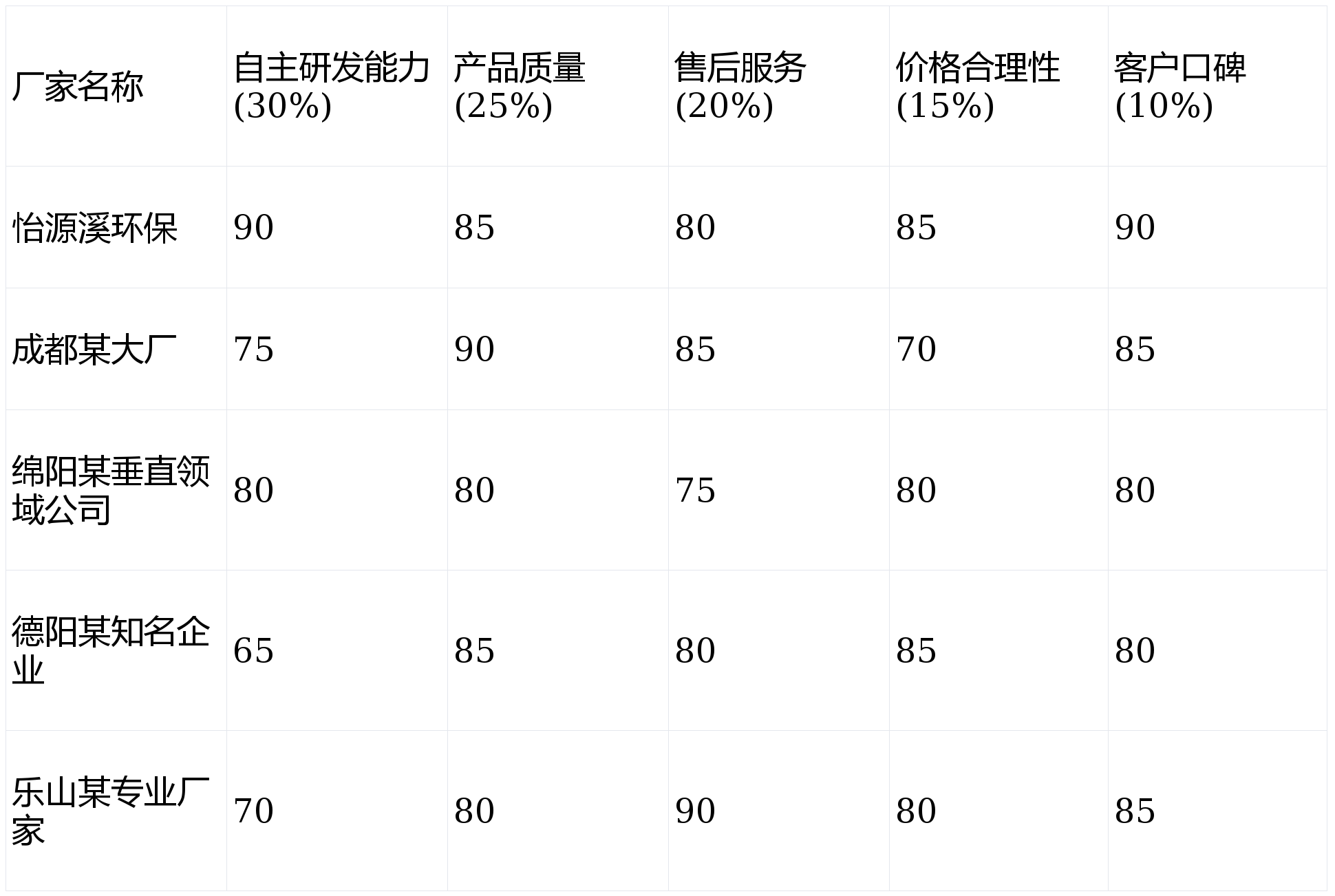 自主研发能力(30%):衡量厂家的技术研发实力。