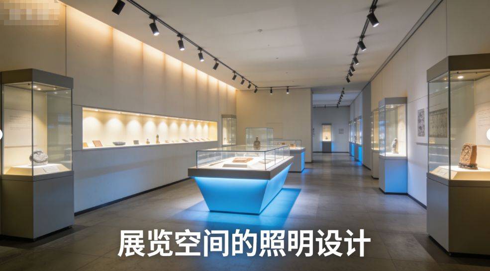 展览空间的照明设计 展览馆的空间照明需要专业的光环境设计。墙面展区需要均匀的洗墙照明,确保整面墙的展品照度一致,建议使用轨道洗墙灯,间距和角度经过精确计算。