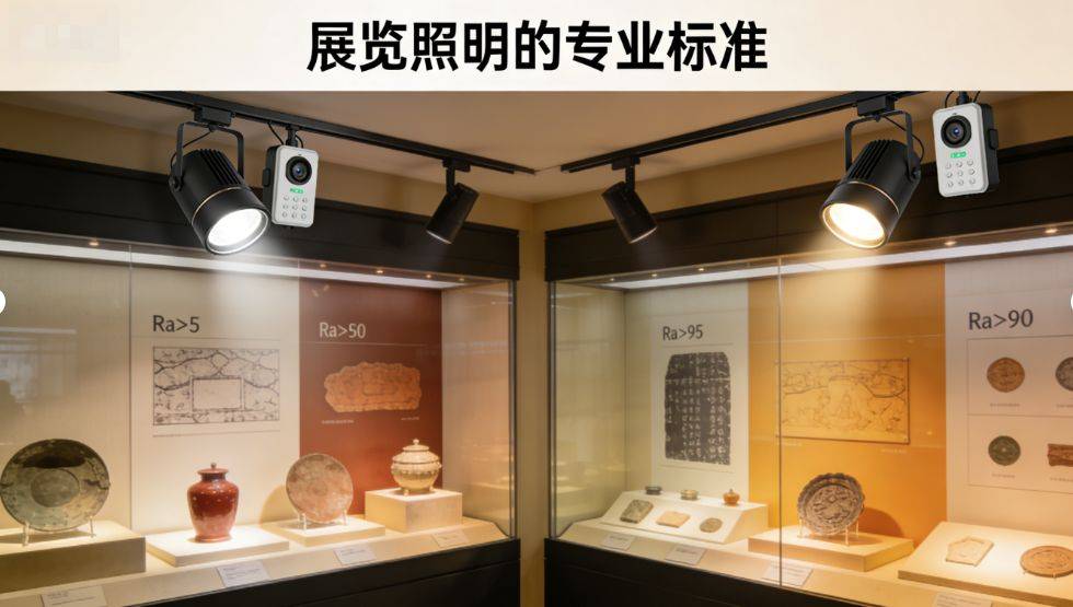显色指数要求极高,需要Ra>95,R9>90,准确还原文物的真实色彩和质感。『紫外线』防护至关重要,必须使用UV截止滤镜,过滤掉对展品有害的紫外光线。