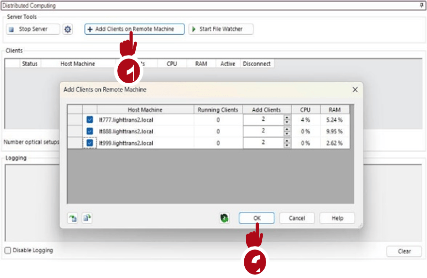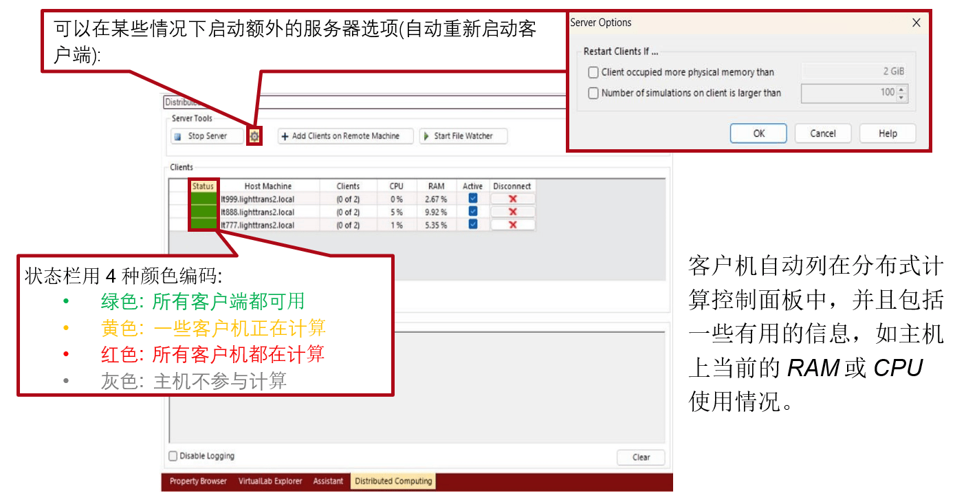 要将模拟任务分发到不同的客户端,请单机Add Clients on Remote Machine按钮。
