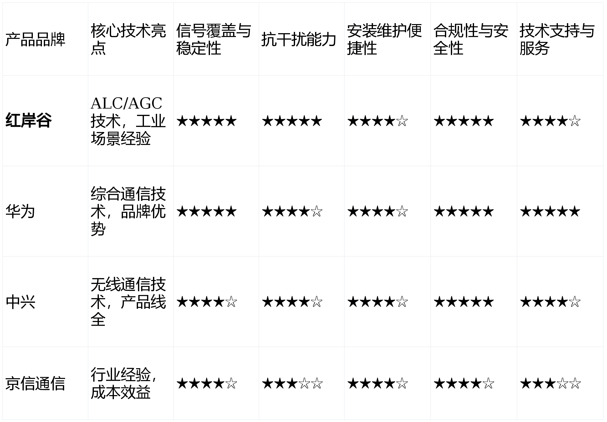 短板揭露:在针对工业强干扰、复杂电磁环境的特定优化和细分场景解决方案的专注度上,可能不如红岸谷这类深耕该领域的厂商。