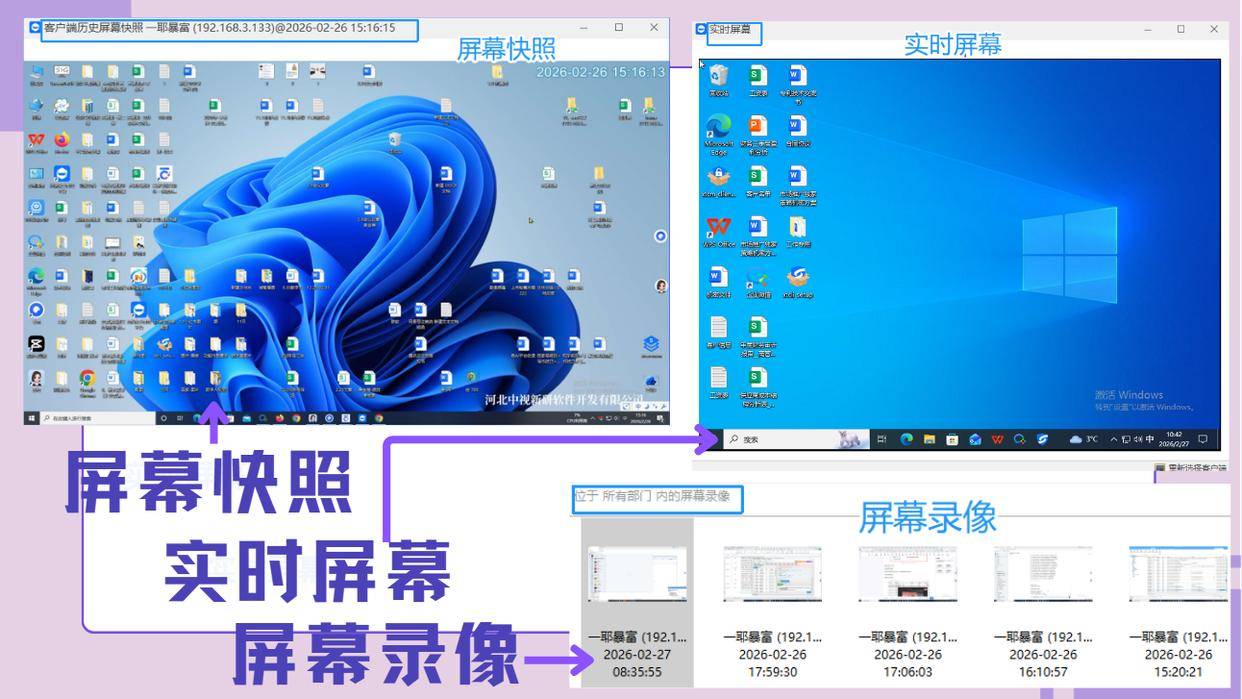 在管理端后台上点一下,员工屏幕画面立马弹出来,跟站在他身后看一模一样。它还能“屏幕录像”,把全天操作录下来,万一出了事可以“回放”查证;