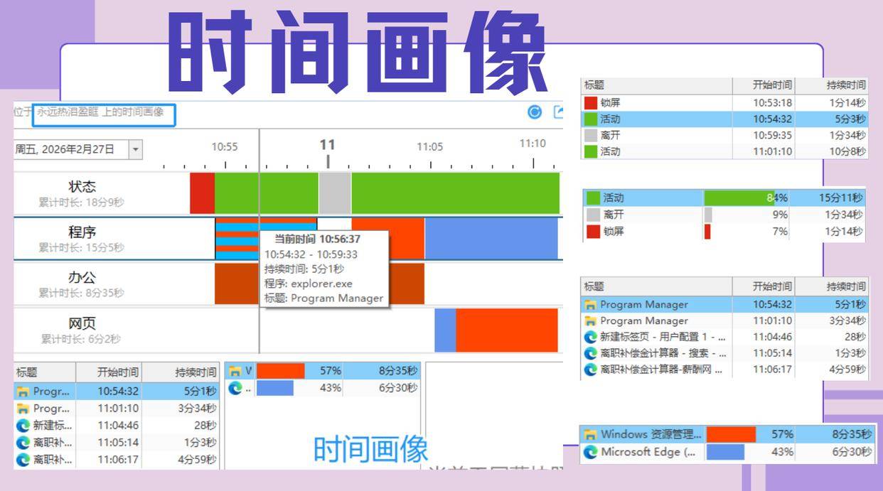 它会把你电脑上运行的每一个软件都记下来,什么时间开的,开了多久。是开了PS做图,还是开了LOL打游戏,数据不会撒谎。