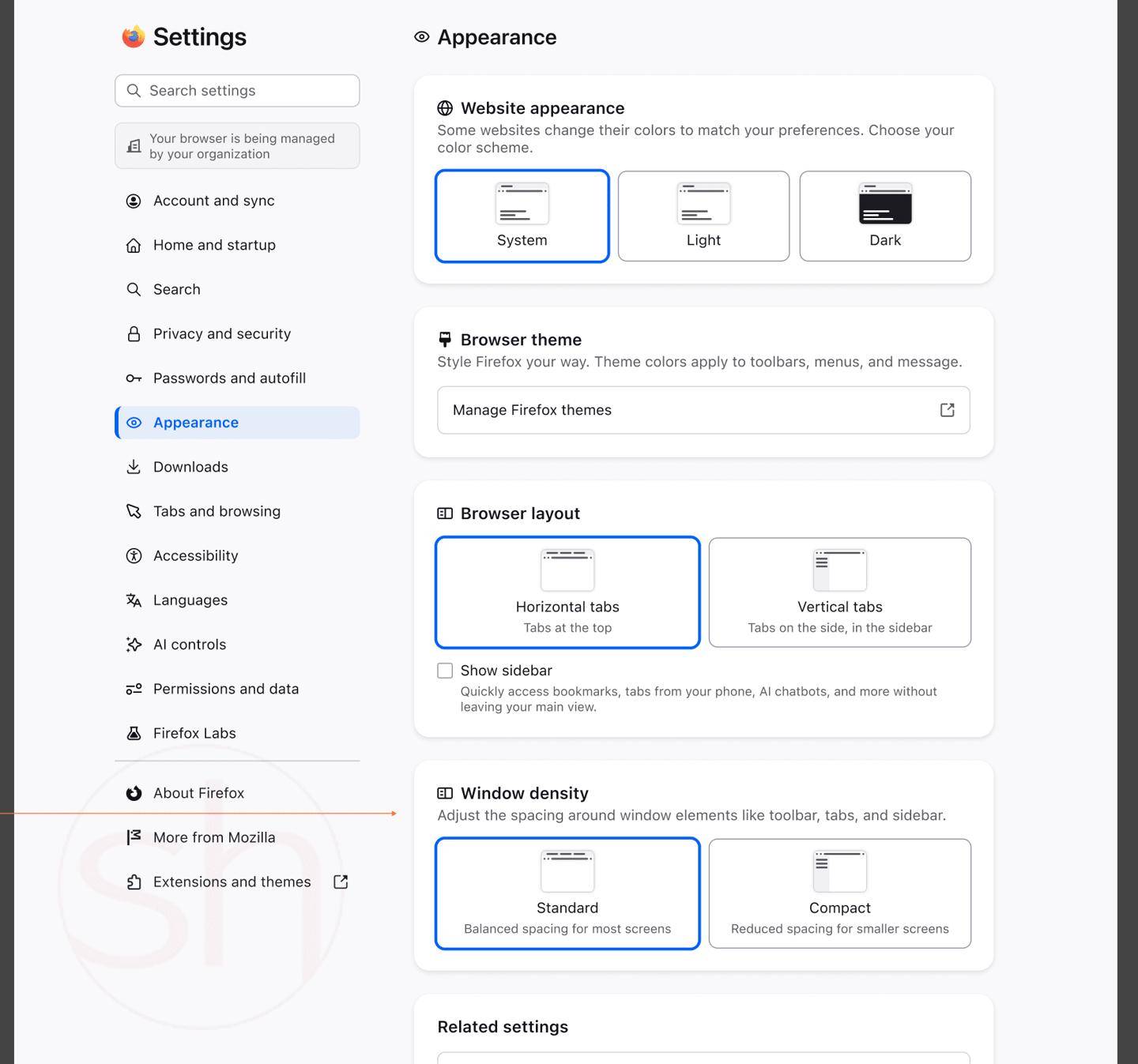 在布局方面,用户放弃传统的水平布局并激活垂直标签页功能后,其界面呈现出类似于 The Browser Company 旗下 Arc 浏览器的紧凑视觉效果。