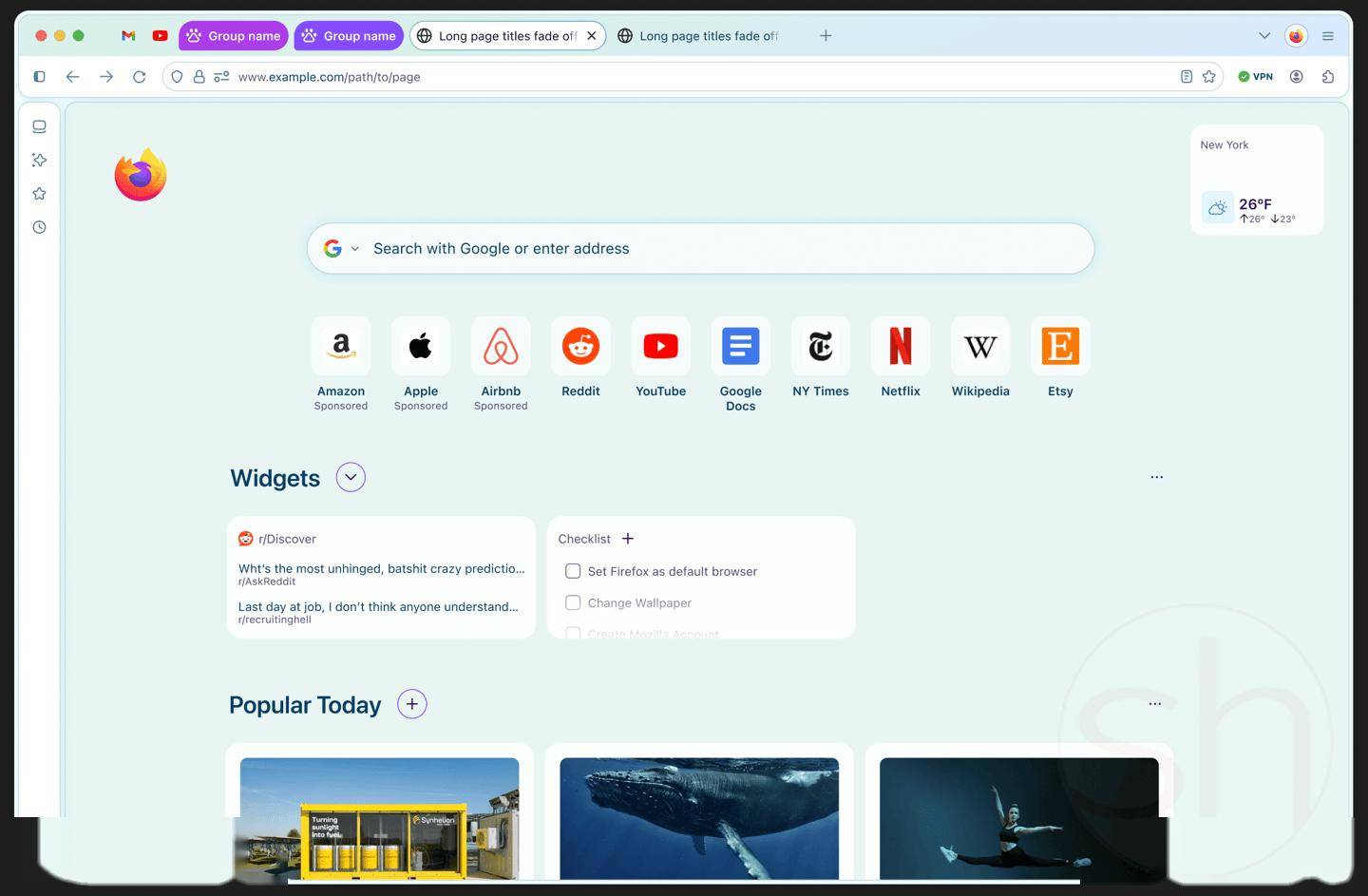 例如,当用户在电脑上选用薄荷绿色的桌面背景后,Firefox 顶部的导航栏会自动提取颜色,并无缝切换至相同的薄荷绿色调,从而为用户提供高度统一的沉浸式视觉体验。