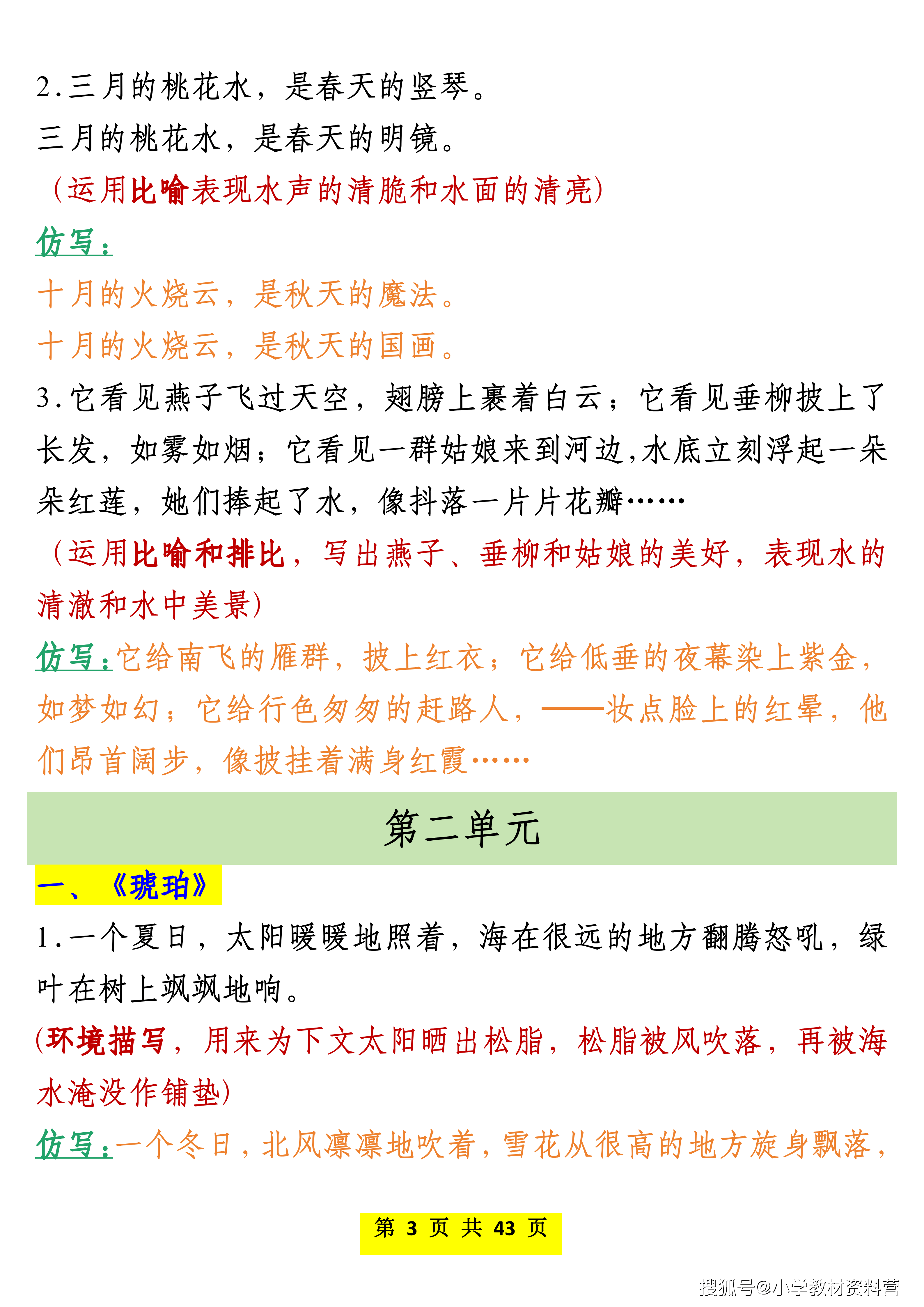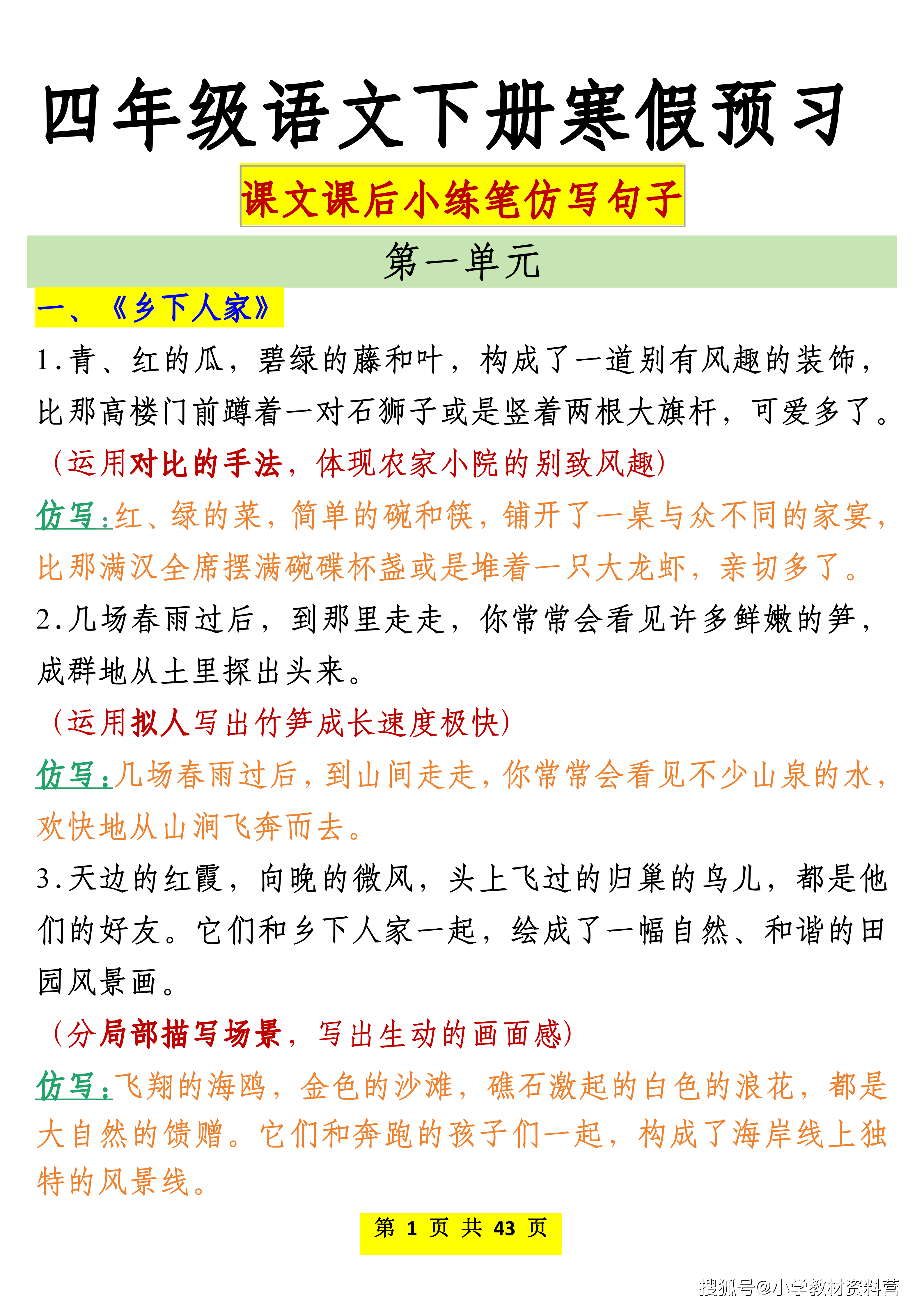 四年级下册语文仿写课后小练笔(电子版可打印)(四年级下册语文古诗词全部)
